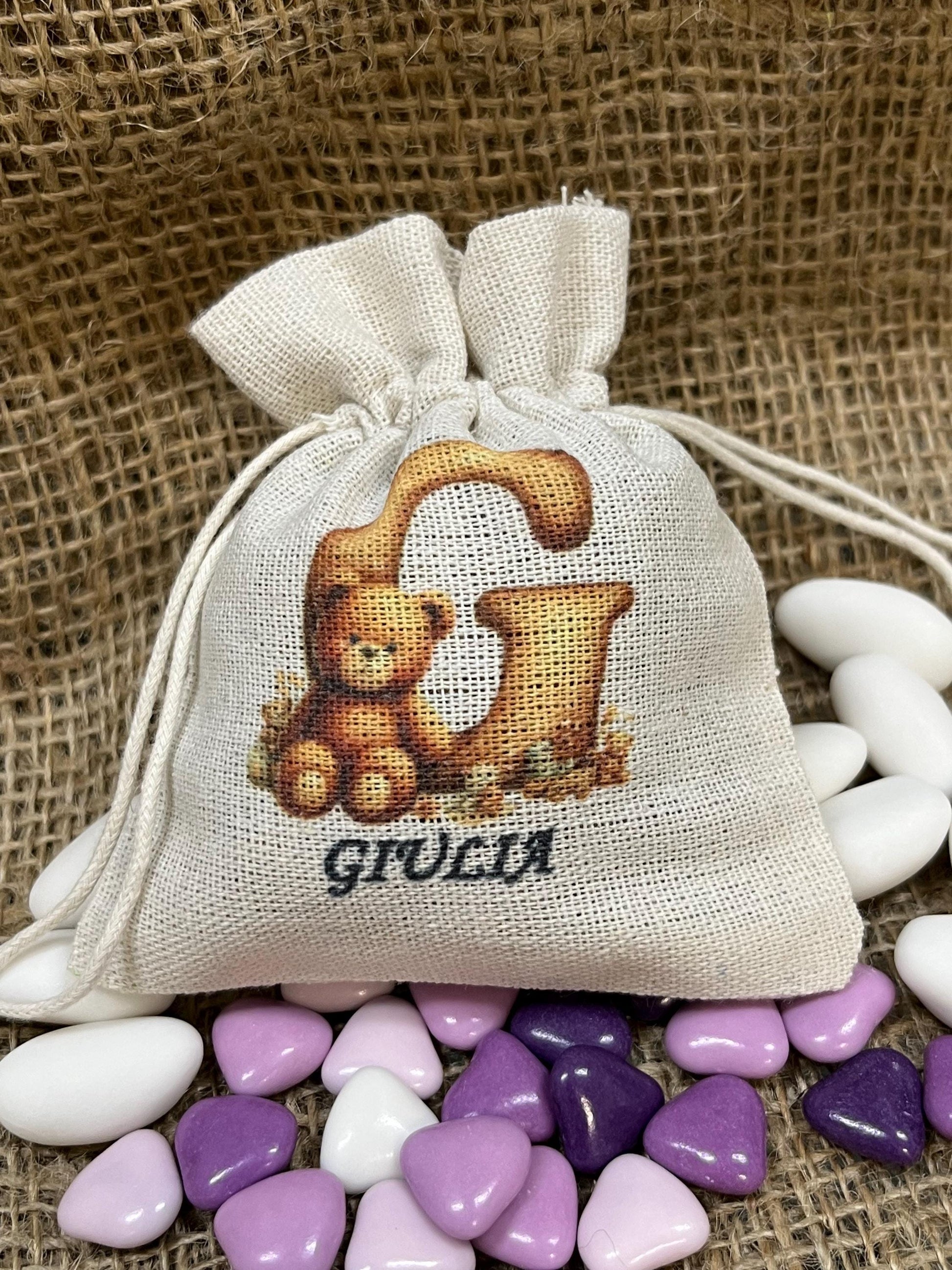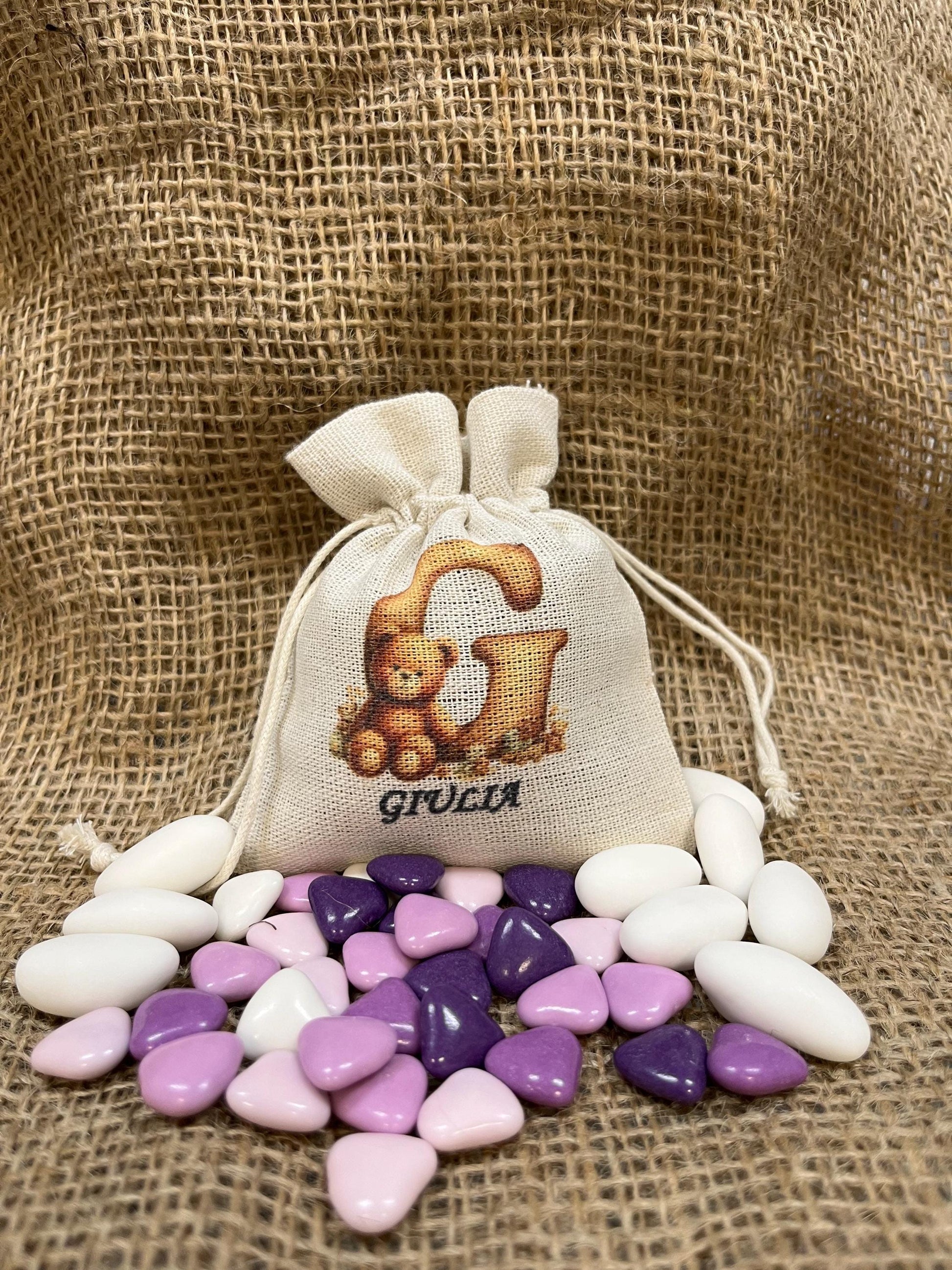 Sacchetto per bomboniera personalizzato-sacchetto per battesimo nascita compleanno comunione cresima-sacchetto personalizzato con nome