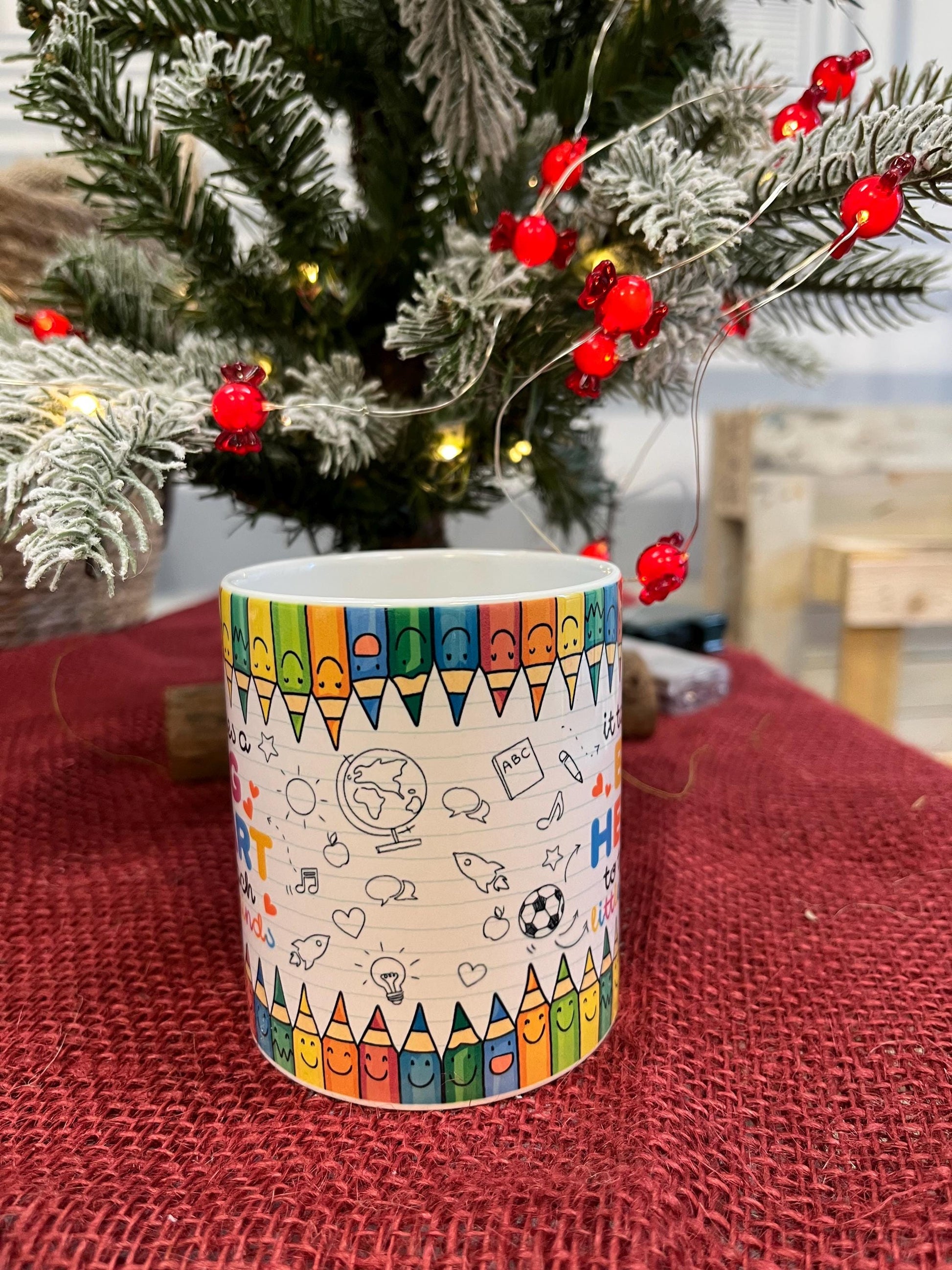 La Tazza in ceramica è stata pensata per accompagnarti nei tuoi momenti di relax, oltre ad essere un grazioso regalo Natalizio per una maestra speciale