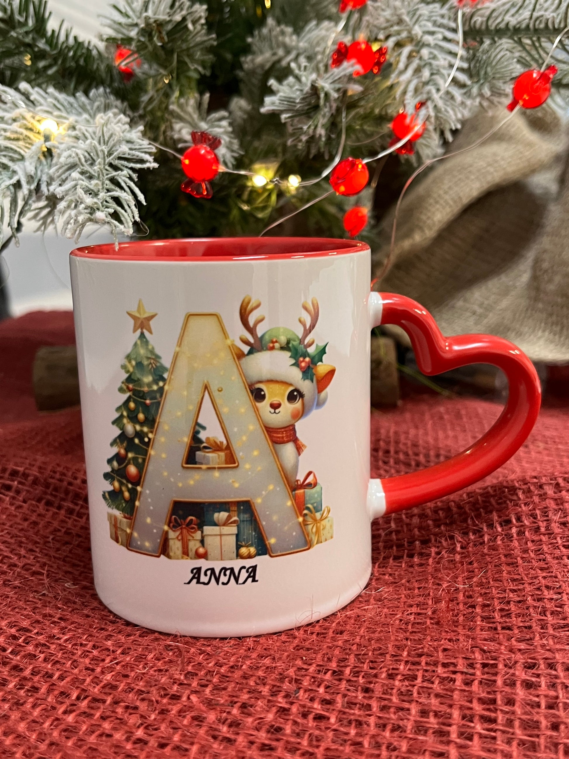 Tazza Personalizzata-Lettera dell'Alfabeto Natalizia e Nome