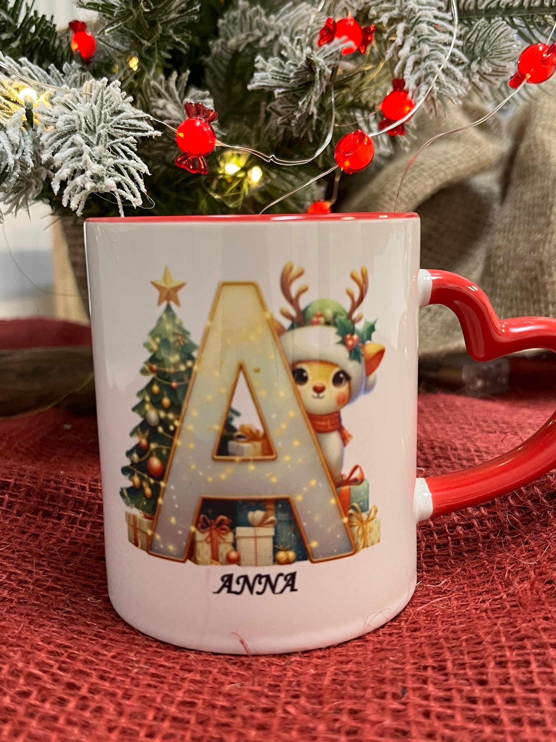 Tazza Personalizzata-Lettera dell'Alfabeto Natalizia e Nome