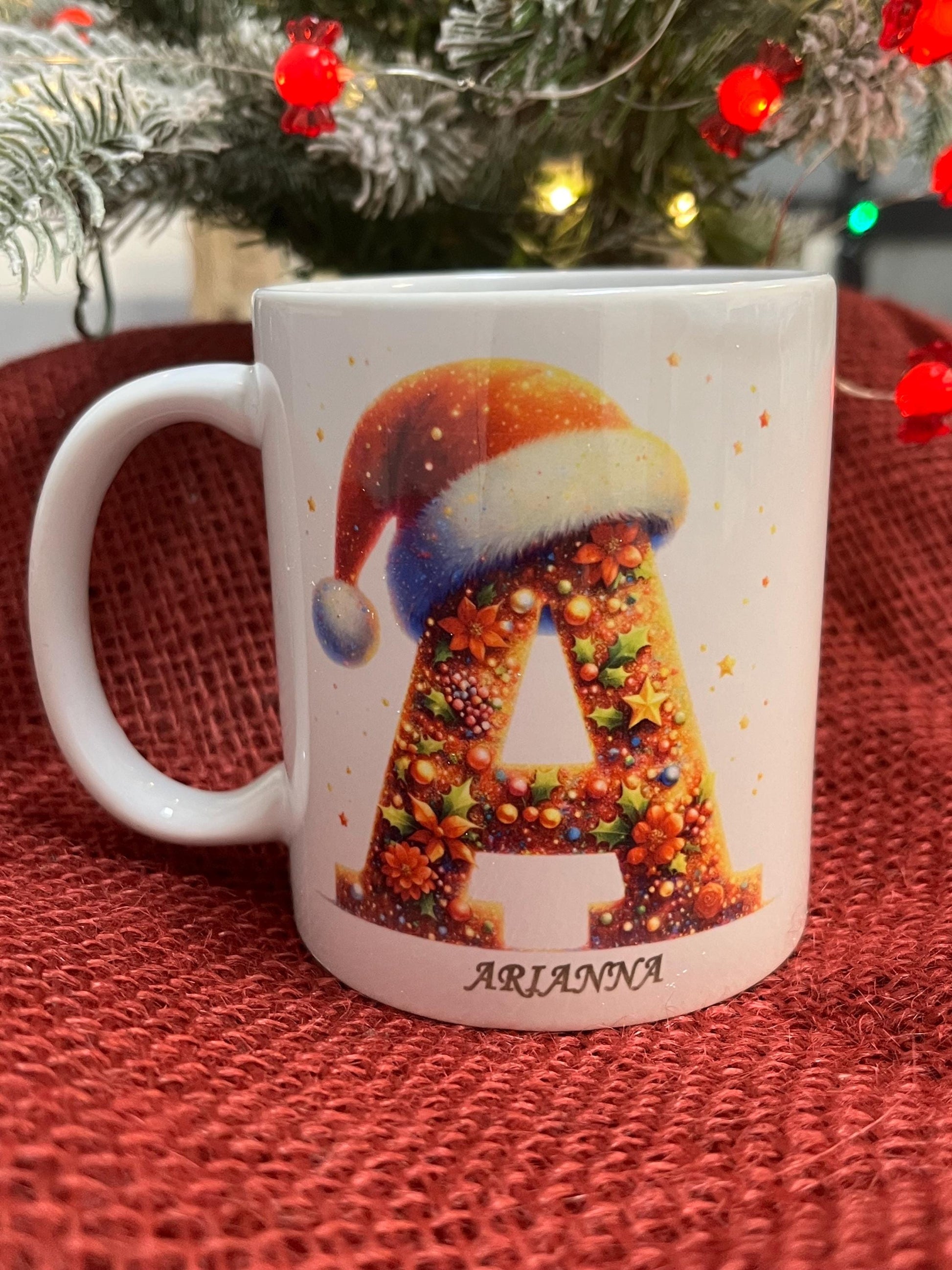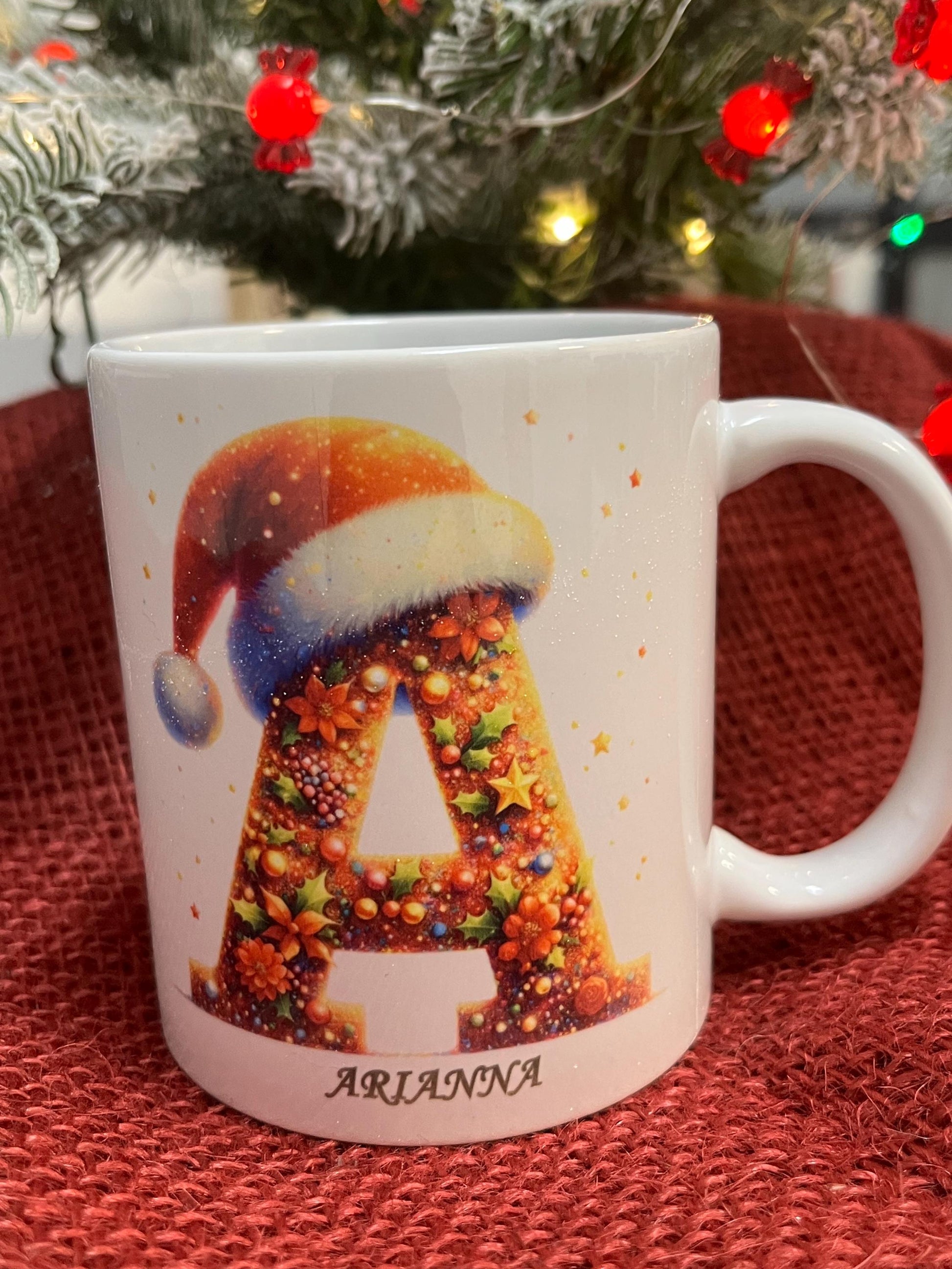 Tazza Personalizzata-Lettera dell'Alfabeto Natalizia e Nome