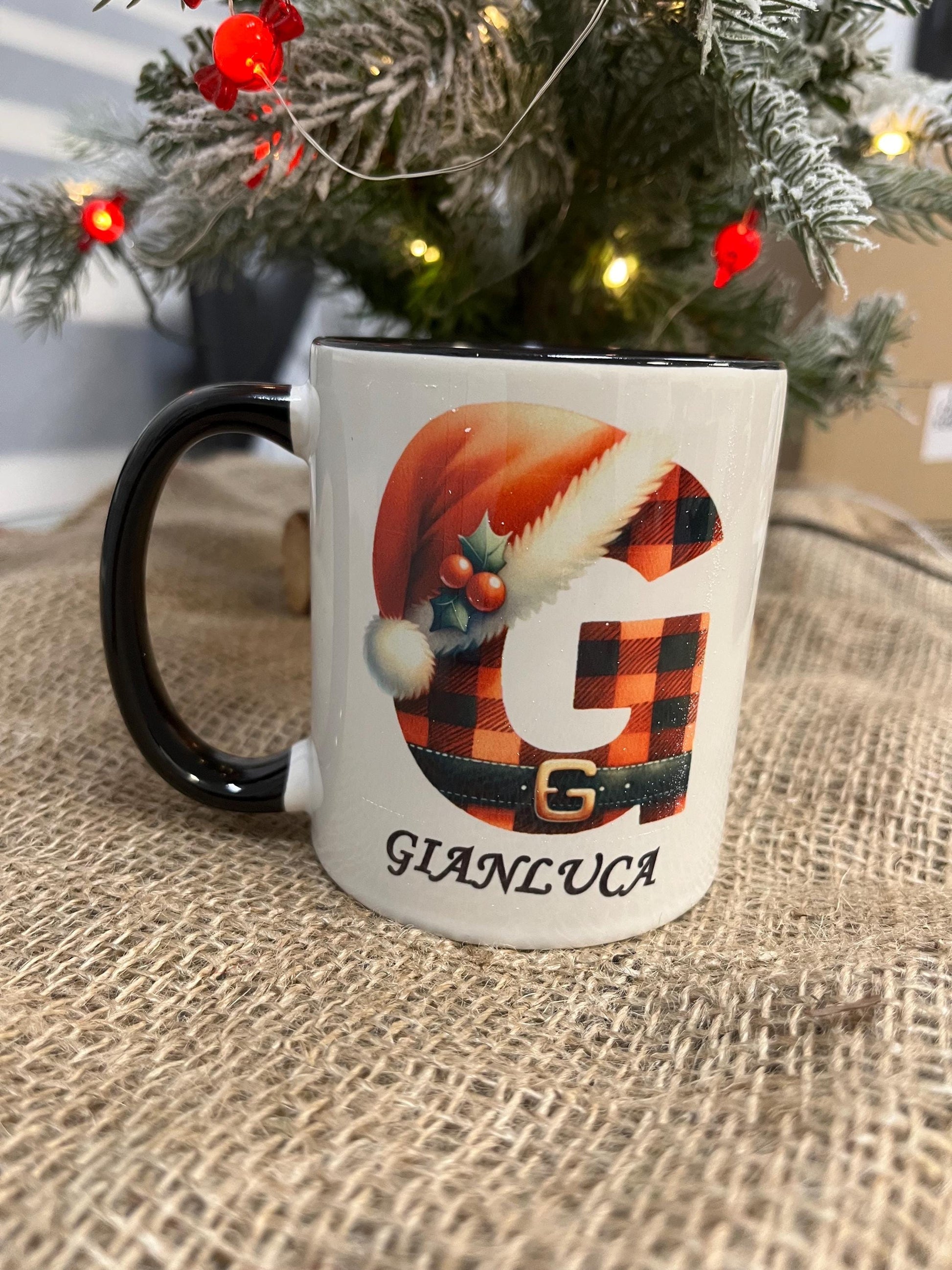 Tazza Personalizzata-Lettera dell'Alfabeto Natalizia e Nome