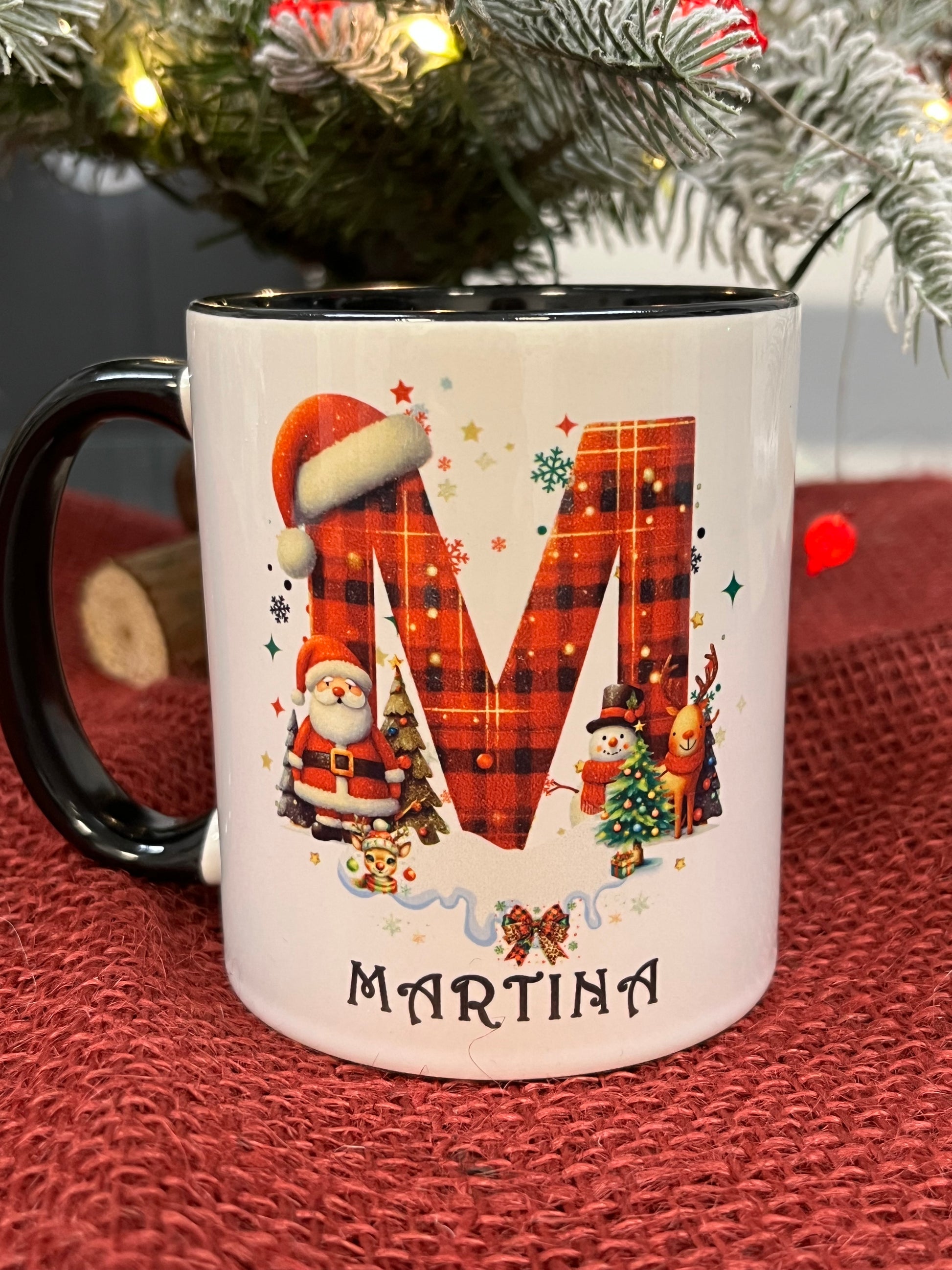 Tazza Personalizzata-Lettera dell'Alfabeto Natalizia e Nome